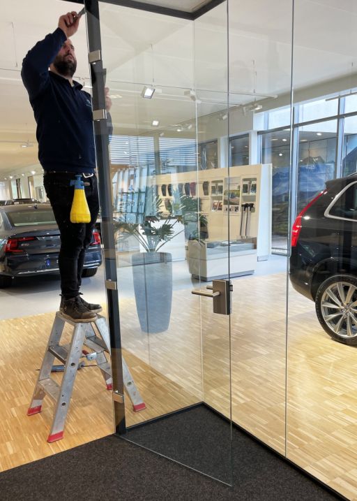 Glasservice Van Essen levert en monteert onder andere glazen wanden. Deze wanden kunnen zowel gehard, als gelaagd worden uitgevoerd. Op de foto hiernaast monteren wij gelaagd/geharde ruiten in een wasstraat te Twello. Dit hebben wij gerealiseerd met onze eigen Hoeflon compactkraan.