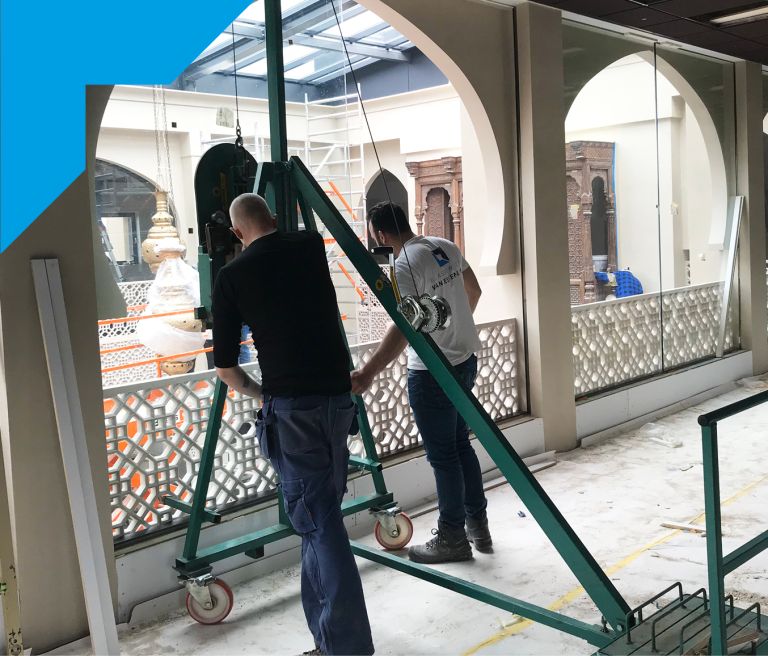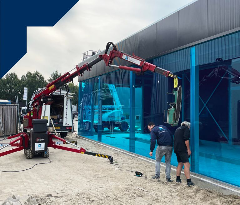 Voor Van Norel Bouwgroep hebben wij in een sauna complex te Wijchen gehard gelaagde ruiten gemonteerd in een zwembad ruimte. Deze ruiten zijn met een torenkraan op de verdieping gehesen en met onze tilhulp middelen geplaatst. De ruiten zijn gelamineerd met een speciale folie die geschikt is voor vochtige ruimtes.